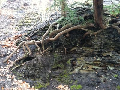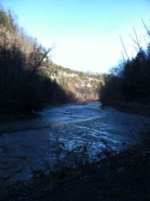 It was a crisp, clear morning, and the sun was just starting to break through the trees to hit the path as we walked back toward the car.