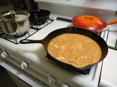 Did you see the curry recipe Andrea posted last week? I made it on Sunday night, using tofu that I browned in butter instead of the seitan meatballs. Mine is a very different color (due, I think, to my use of a can of coconut milk instead of coconut flakes rehydrated in water), but I’m guessing it was the same level of deliciousness. Oh my. So good, so easy, so going into my kitchen recipe binder.
