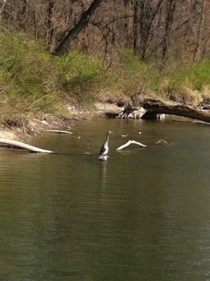 We also saw this Great Blue Heron. Boh and Madigan were too busy focusing on all the Canadian Geese to notice.