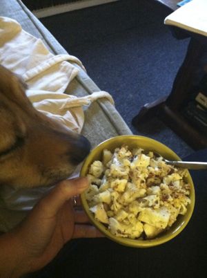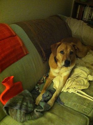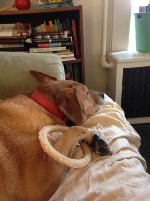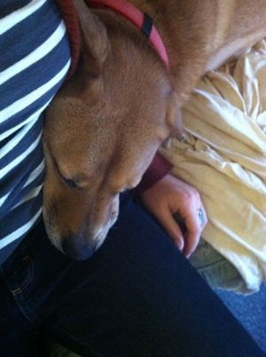 Tuckered out. I woke up yesterday to find Boh with his head on the pillow next to me. Silly, silly dog.