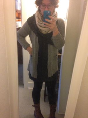 Last bare-legged day of the season, I’m guessing. (These boots are in terrible shape, but I can’t bring myself to retire them…)