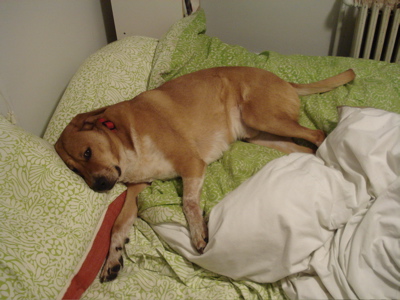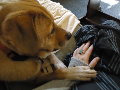 Can this dog get any sweeter? I managed to grab the camera with my right hand today after Boh put his paw on my left. He must have been transmitting some good, productive vibes, because even with all the fibery goodness, I managed to write a few pages today. And now it is bedtime.