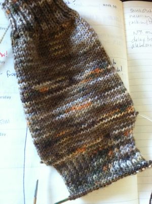 I turned the heel of the first of two long-neglected plain and simple socks. It helped with Monday.