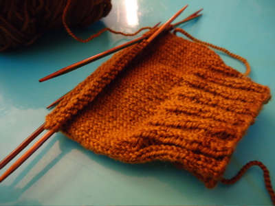 So, remember how I started a pair of Gentleman’s Fancy Socks? In January? Well, they are no longer fancy. I was running out the door yesterday to head to an afternoon lecture, and realized that I didn’t have any lecture-appropriate knitting. (Read: simple, involving wooden needles, and able to keep me busy for two hours.) See, I’m decreasing for the crown of the windschief hat, which means that at any moment I’ll need to switch to DPNs — and the circ is metal. And it will take less than two hours. And I am on one of the counting rows of the Citron, and the lace yarn is so thin that I really have to squint at it. And I’m still increasing on Idlewood, and my Kerrera is languishing, waiting for me to pick up the sleeve stitches…