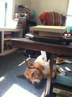 My progress right after lunch, strawberry smoothie in hand. (Note: I picked a gallon of strawberries at the farm on Tuesday, and I’ve already managed to eat 3 quarts. I’ll probably polish off the last one today.)
