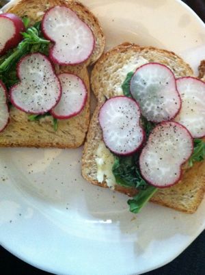 Then I had radish toast for lunch. (Radish toast, in this iteration, is toast, butter, arugula, radish slices, and salt and pepper. It is even more delicious than you think it is. Trust me.)