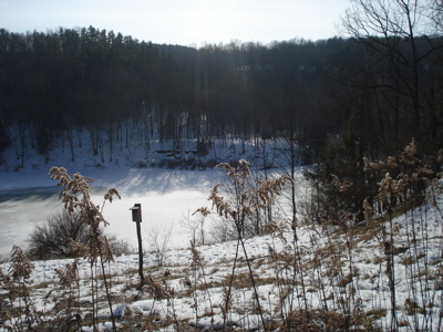We also saw this Great Blue Heron. Boh and Madigan were too busy focusing on all the Canadian Geese to notice.