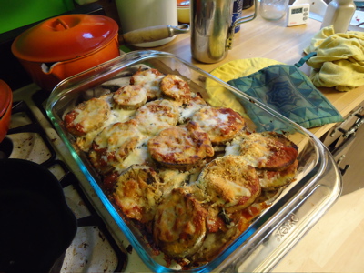 Last weekend I made a pan’s worth of eggplant parmesan using a big, beautiful farm eggplant. It was awesome. And last Friday (I think) I made gazpacho.