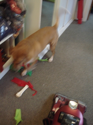 This is absolutely hilarious, and I wish I’d gotten better photos of the whole sequence. It is rather difficult to operate a vacuum cleaner with one hand and snap photos with the other.