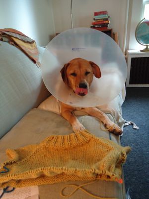 And here he is, mid-yawn. As you can see, the bandage is off, and his cut is healing very nicely. A few more days in the cone should do it.