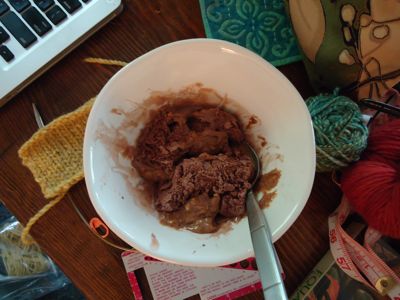 I recognize that all of these mishaps/messes/expenses are quite small in the grand scheme of things. I am quite lucky to have what I have, be where I am, and do what I do. I get that, and I don’t mean to just whine self-indulgently here about problems like these. So instead, I’ll tell you about that bowl of ice cream. Oooh, and that swatch.