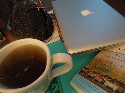 My office — and my new shiny piece of technology. (I bought an iPad mini, and I love it. It has already been more useful than I could have imagined for my work. I’m reading and annotating articles and drafts, and using it as a second screen while reviewing documents and making notes. Super awesome.) Also, that’s a bowl of tabbouleh. I’m still getting used to packing my lunch every morning. At home, most days I split my work between home and campus or a coffee shop, and head back to the house to walk Boh and make lunch.